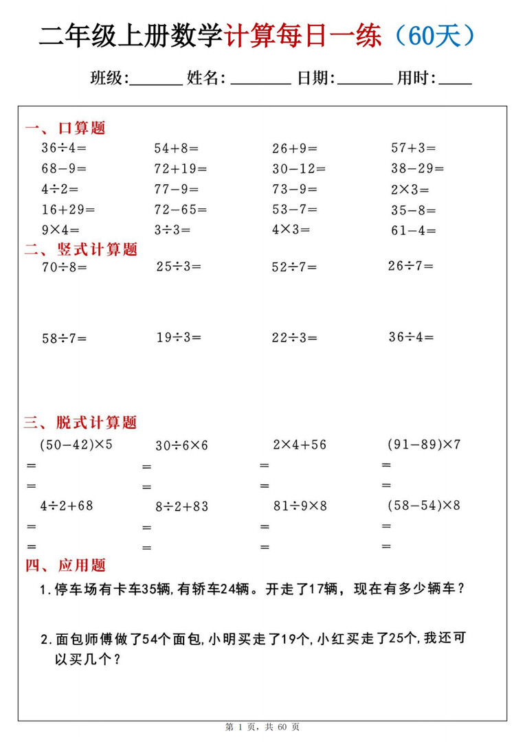 2上数学期末冲刺每日一练.