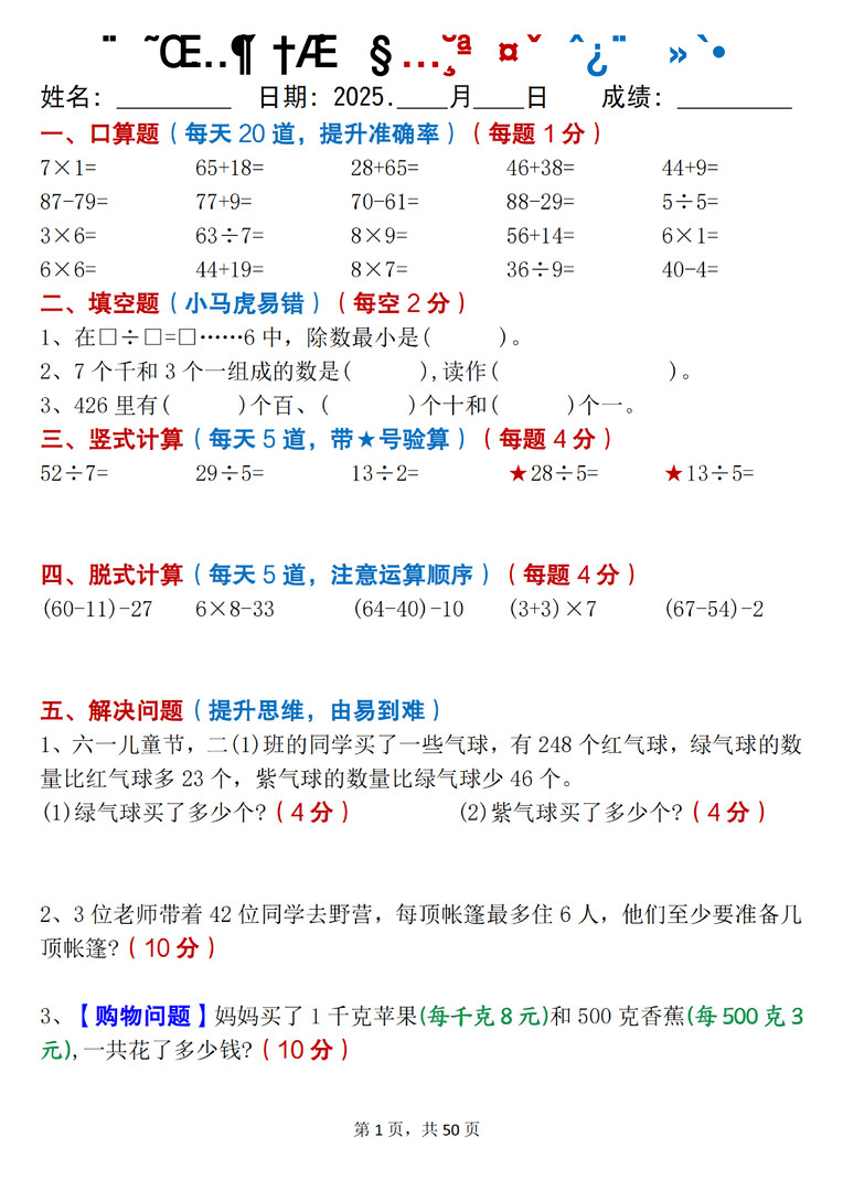 5上数学期末冲刺每日一练.