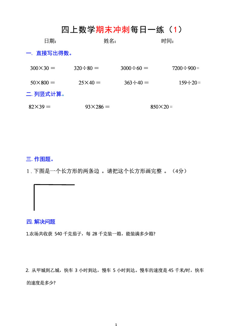 4上数学期末冲刺每日一练.