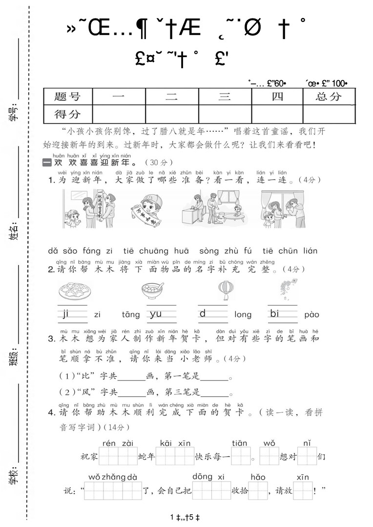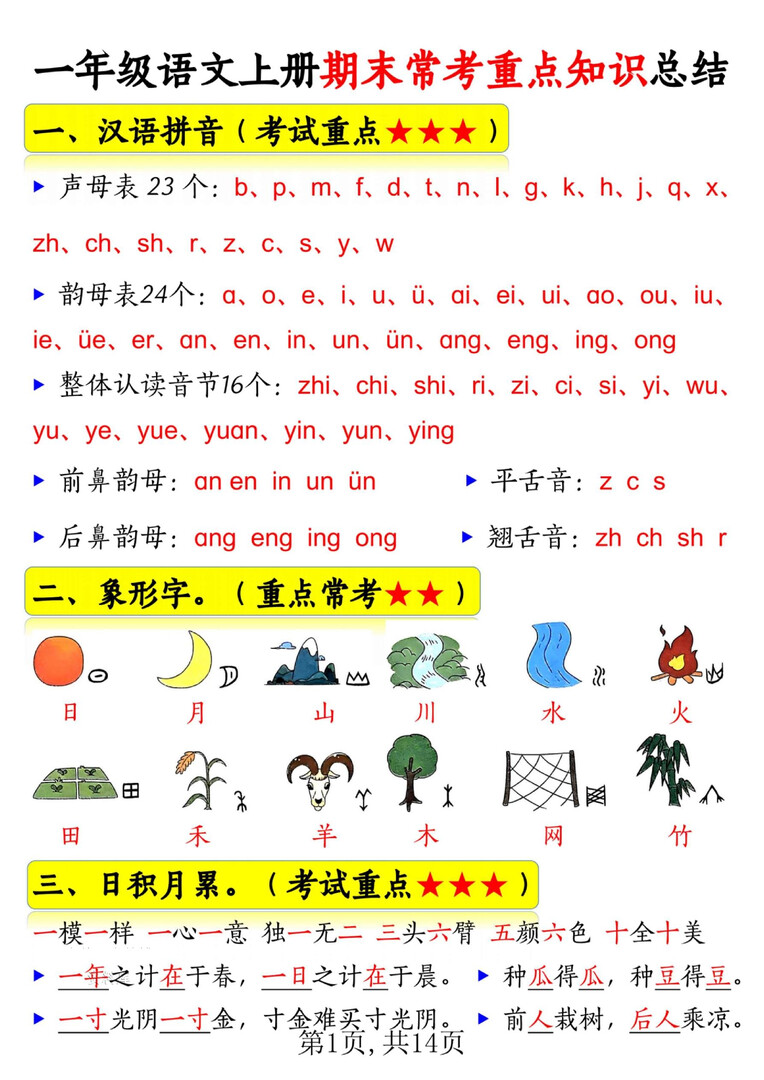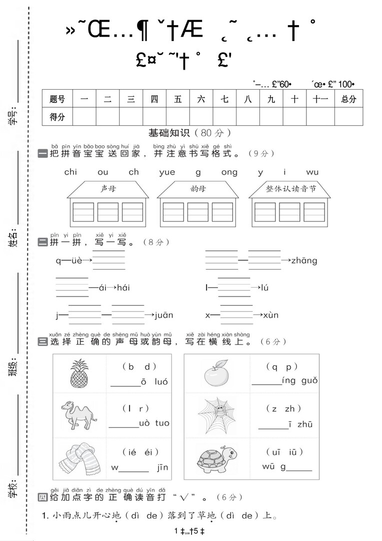 一年级(上)语文期末复习专项达标卷课内阅读与积累运用